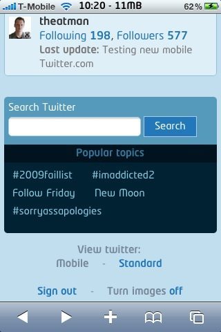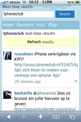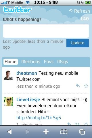 Er zijn inmiddels Twitter-clients voor de iPhone in overvloed. De bekendste zijn Tweetie, Echofon en Twittelator Pro. Al deze clients maken gebruik van de verschillende API’s die Twitter aanbiedt, zoals de mogelijkheid om te retweeten, een tweet aan je favorieten toe te voegen of een reply op een tweet te geven. De oude mobiele website van Twitter (m.twitter.com) liep tot nu toe behoorlijk achter. Hier was het enkel mogelijk om tweets te lezen en je kon bijvoorbeeld niet eenvoudig een reply sturen naar iemand. De makers van Twitter hebben nu een vernieuwde mobiele website gelanceerd met daarop een stuk meer mogelijkheden dan voorheen. Ook is er een zoekfunctie toegevoegd.