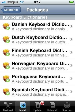 - De Keyboard Dictionaries zijn direct onder de categorieën van iFoneguide te vinden (daar vind je T9).