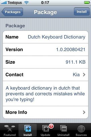 In de handleiding voor beginners hebben we al uitgelegd hoe je kunt zorgen voor woordaanvulling in het Nederlands via T9. Er is nu ook een ander Nederlands woordenboek voor woordaanvulling, gemaakt door iPhoneDict. Deze bevat 155.144 Nederlandse woorden, elk met een bepaalde relevantie. Als er meerdere woorden beschikbaar zijn, zal de iPhone altijd het woord suggereren dat het meest relevant is.