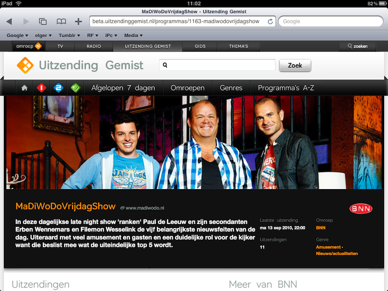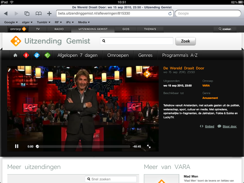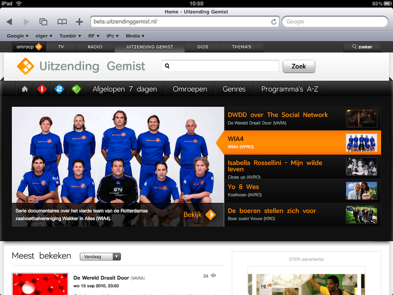 Een behoorlijke metamorfose inderdaad, maar wel erg strak. Lekker eigentijds weer en de iPad-ondersteuning is natuurlijk helemaal geweldig. De Uitzending Gemist-app is niet echt ideaal op de iPad, omdat je ‘m moet vergroten. Het werkt wel, maar het kan beter.
