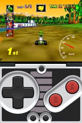 Heb hem gekocht en mario kart erop geinstalleerd… is nog wel erg schokkerig, verder vind ik die controller in beeld niet zo fijn, dus een landscape optie, met doorzichtige toetsen zou wel een pre zijn. Oh, en er zijn geen R en L toetsen… dus mario kart kan niet zijn schildjes schieten