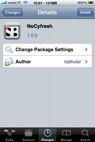 NoCyfresh is een SBSettings-plugin die ervoor zorgt dat je een schakelaar krijgt om de automatische Refresh-functionaliteit van Cydia gemakkelijk aan en uit te zetten. Je kunt op deze manier voorkomen dat de repositories worden ververst en dat vervolgens de data gereload moet worden. Handmatig verversen via Refresh in het onderdeel Changes blijft mogelijk.