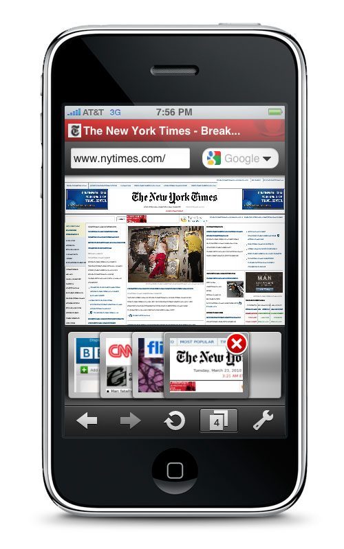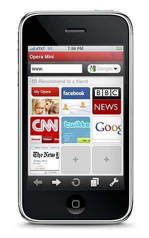 Opera Mini is ingeleverd bij de App Store, heeft de Noorse browsermaker laten weten. Opera’s grootste troef is de snelheid waarmee je webpagina’s kunt binnenhalen. Dit is mogelijk omdat alle webpagina’s die je opvraagt eerst langs een server gaan, die afbeeldingen en andere inhoud comprimeert met zo’n 90 procent. Opera Mini op de iPhone haalt de webpagina’s daarna op als gecomprimeerde Opera-bestanden. Meer web per MB dus. Volgens de makers is het vijfmaal sneller dan Mobile Safari.