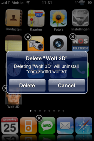 CyDelete, hiermee is het mogelijk om de applicaties die je via Cydia hebt geinstalleerd op dezelfde manier te verwijderen als dat je dat doet met de officiele iTunes applicaties d.m.v. het kruisje.