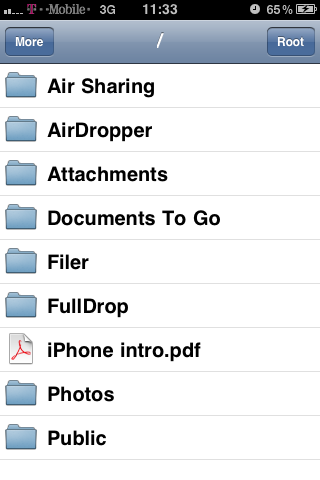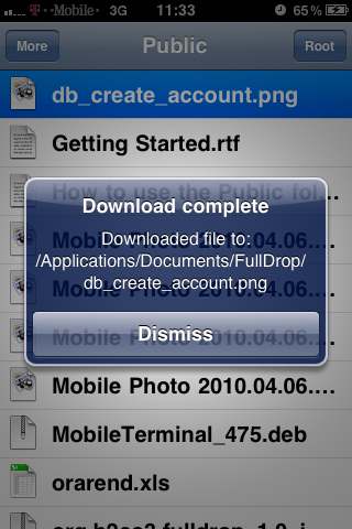 De applicatie FullDrop stelt je in staat om meer te kunnen doen met je DropBox-account op iOS, zoals het uploaden van andere types bestanden dan foto’s. De bestanden die gedownload zijn worden geplaatst in de map /var/mobile/Library/FullDrop en kun je dus met extensie iPhone Folders of een applicatie als iPhone Explorer benaderen. Je kunt bestanden uploaden door ze ook in deze map te plaatsen. Lokale bestanden zijn te verwijderen door de bekende slide-beweging, ondersteuning voor het op afstand verwijderen van bestanden zal nog worden toegevoegd.