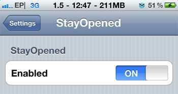 StayOpened is een tweak die ervoor zorgt dat Apple’s App Store niet af wordt gesloten wanneer je besluit een applicatie te downloaden, waardoor je applicaties op de achtergrond kunt installeren. Daarnaast kun je de inhoud van de meldingen die je te zien krijgt bij het downloaden wijzigen.