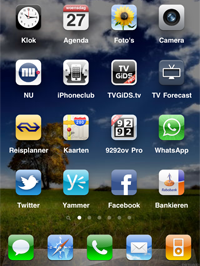 Bigyfy is heel handig om te gebruiken, samen met 5 icon springboard. Als je 5-icon springboard installeert zijn de icoontjes te groot en staan ze helemaal tegen elkaar aan. Met bigyfy is het resultaat zo :
