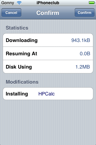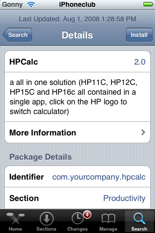 HPCalc is te installeren via de BigBoss-source in Cydia.
