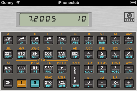 In firmware 2.0 krijgt de standaard meegeleverde rekenmachine veel meer functies als je de iPhone naar landschapsweergave draait. Maar heb je daar niet genoeg aan of ben je verslingerd aan de indeling van de HP 11C, 12C, 15C of 16C dan kun je via Cydia nu ook de HPCalc 2.0 installeren. De rekenmachine bevat een lijst met constanten, onderverdeeld in categorieën waaronder astronomie, electromagnetisme, fysiochemie.