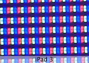 Het onder de microscoop bekijken van de iPad 3 onthult de filters die worden gebruikt om pixels te tonen. Deze zijn bij de nieuwe iPad een stuk talrijker dan bij de iPad 2, omdat de resolutie een stuk hoger ligt. Een nieuw Retinascherm zou ervoor moeten zorgen dat het menselijk oog bij een gewone afstand geen pixels meer kan onderscheiden.