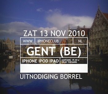 De iPhoneclub-borrel België vindt vanavond 13 november 2010 plaats in Gent. Vanaf 20:00 uur ben je welkom café Vooruit.