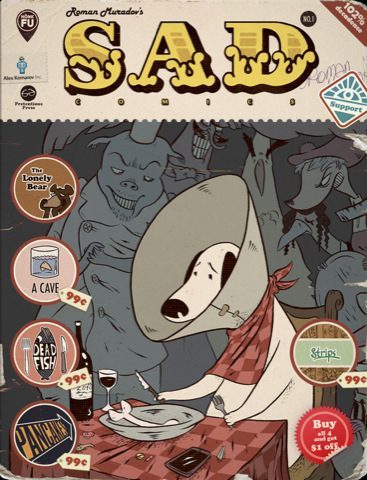 Sad Comics is een verzameling aan deprimerende, tranentrekkende en ironische stripboeken. De strips, geschreven en getekend door illustrator Roman Muradov, lagen nooit in de winkels en zijn daarmee een exclusieve iPad-uitgave. 102% aan decadentie, zo belooft de startpagina van de app.