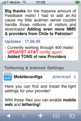 Werkt perfect! Officiële Iphone 3G 16GB van T-Mobile, en internet tethering werkt meteen na volgen van bovenstaande instructies. Bij mij werkt MMS en VVM daarna ook gewoon door. 🙂 Bedankt voor de goede tip hierover!