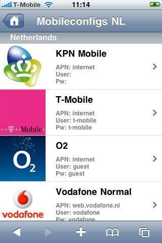 4. Je komt dan in een pagina waar je de providers van je land ziet staan (plaatje 3). Ook KPN, Vodafone en andere providers staan erbij.