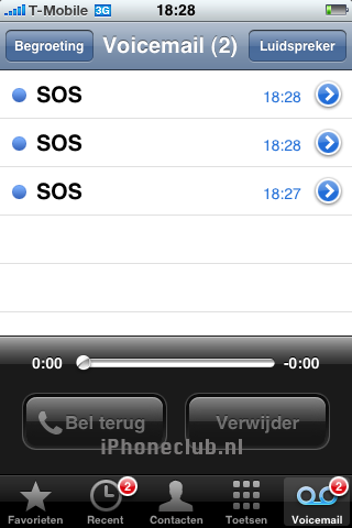 Als je vannacht om iets na middernacht bellend de T-Mobile-winkel uitloopt met je nieuwe iPhone 3G, dan kunnen je vrienden meteen je voicemail al inspreken. En je kunt er in iPhone-stijl naar luisteren: via Visual Voicemail. We werden zonet gebeld door T-Mobile dat Visual Voicemail is ingeschakeld en dat de iPhone-abonnementen nu volledig functioneren. Het instellen van de begroeting is bij Visual Voicemail wat anders dan bij gewone voicemail.