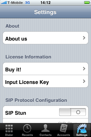 Nou bij mij werkt ie voor geen meter. Ik kan mijn SIP instellingen inkloppen maar als ik hem op ON zet dan gaat ie zodra ik naar een andere tab ga weer eruit. Na een tijdje crashed ie zelfs. Dus helaas is de app niet 100% lijkt mij.. In forums heb ik gelezen dat de evaluatie is verlopen als ie dat doet.. Maar dat zou de maker hem dus al verlopen in Cydia hebben gezet. Iemand anders ook deze ervaring? Ik zit trouwens op 2.2
