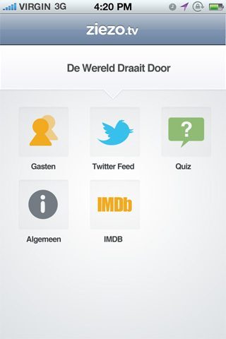 De beste integratie is volgens Mendel mogelijk door applicaties samen met producenten te maken. Er zijn momenteel wel gesprekken met producenten. Welke dat zijn is nog onbekend. De data zou dan kunnen worden toegevoegd aan Ziezo.tv Sync en komt zo beschikbaar voor derden. De eerste applicatie (voor de iPhone) zal halverwege volgende week bij Apple worden aangeboden, zo liet Mendel Looije ons vandaag weten. Doorgaans verschijnt de applicatie dan binnen twee weken in de App Store.