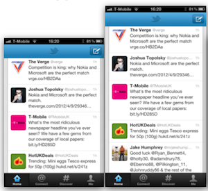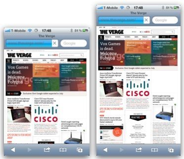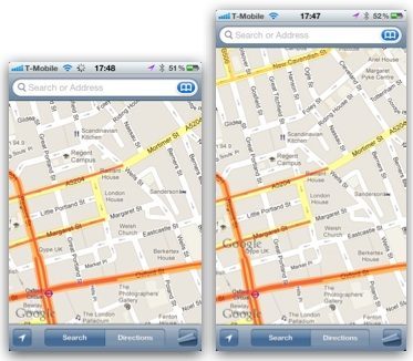 Hieronder vind je een aantal voorbeelden: de linkerscreenshot is een app op het huidige 3,5 inch scherm, terwijl die daarnaast gebruik maakt van het mogelijke 4 inch scherm. Wil je meer vergelijkingen bekijken, dan kun je terecht op het forum van The Verge.