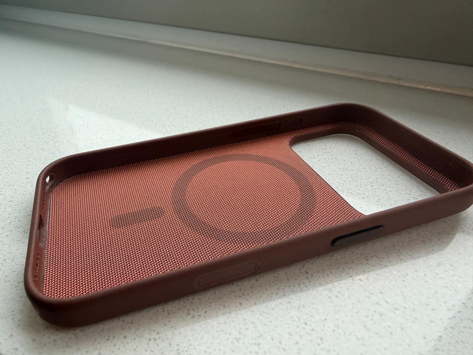 Qua ontwerp hebben we geen klachten over de TechWoven-case. Het duidelijke patroon in het geweven polyester geeft het hoesje wel een unieke look, hoewel we ons ook voor kunnen stellen dat niet iedereen dit mooi vindt. De case is echter niet heel elegant, in tegenstelling tot Apple’s voormalige leren cases. In dat opzicht past hij wel mooi bij de iPhone 17 Pro, die ook een wat meer robuuste look heeft dan zijn voorgangers.