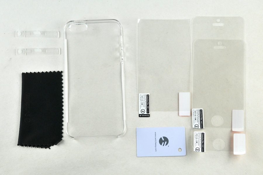 SwitchEasy levert twee screenprotectors bij de case die je moet aanbrengen op de welbekende manier: eerst de achterkant eraf halen, het plastic voorzichtig op je iPhone plakken met een meegeleverd krabbertje de luchtbelletjes eruit drukken en dan de voorkant eraf halen. Als je hem er goed opplakt past hij goed op het scherm van de iPhone 5 en hij heeft uiteraard uitsparingen voor de homeknop en telefoonspeaker.