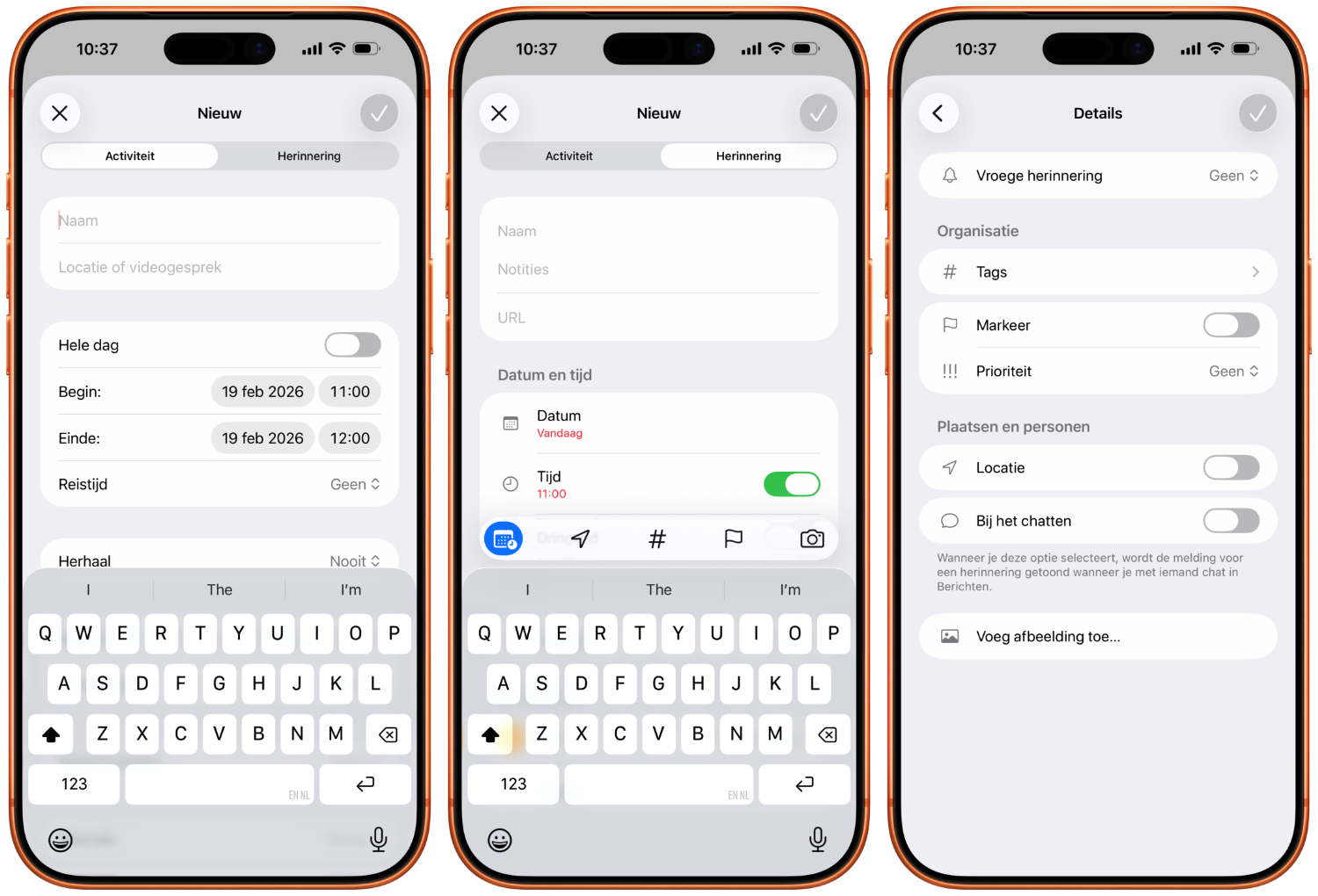 Je kunt ook eenvoudig een nieuwe herinnering aanmaken in de Agenda-app. Deze verschijnt vervolgens ook gewoon in de Herinneringen-app. Dat werkt zo: