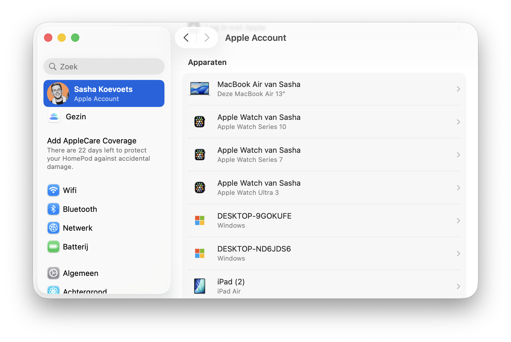 Apple houdt van de meeste apparaten bij of ze aan je Apple Account zijn gekoppeld of niet. Onderstaande apparaten kun je via de overzichten bekijken: