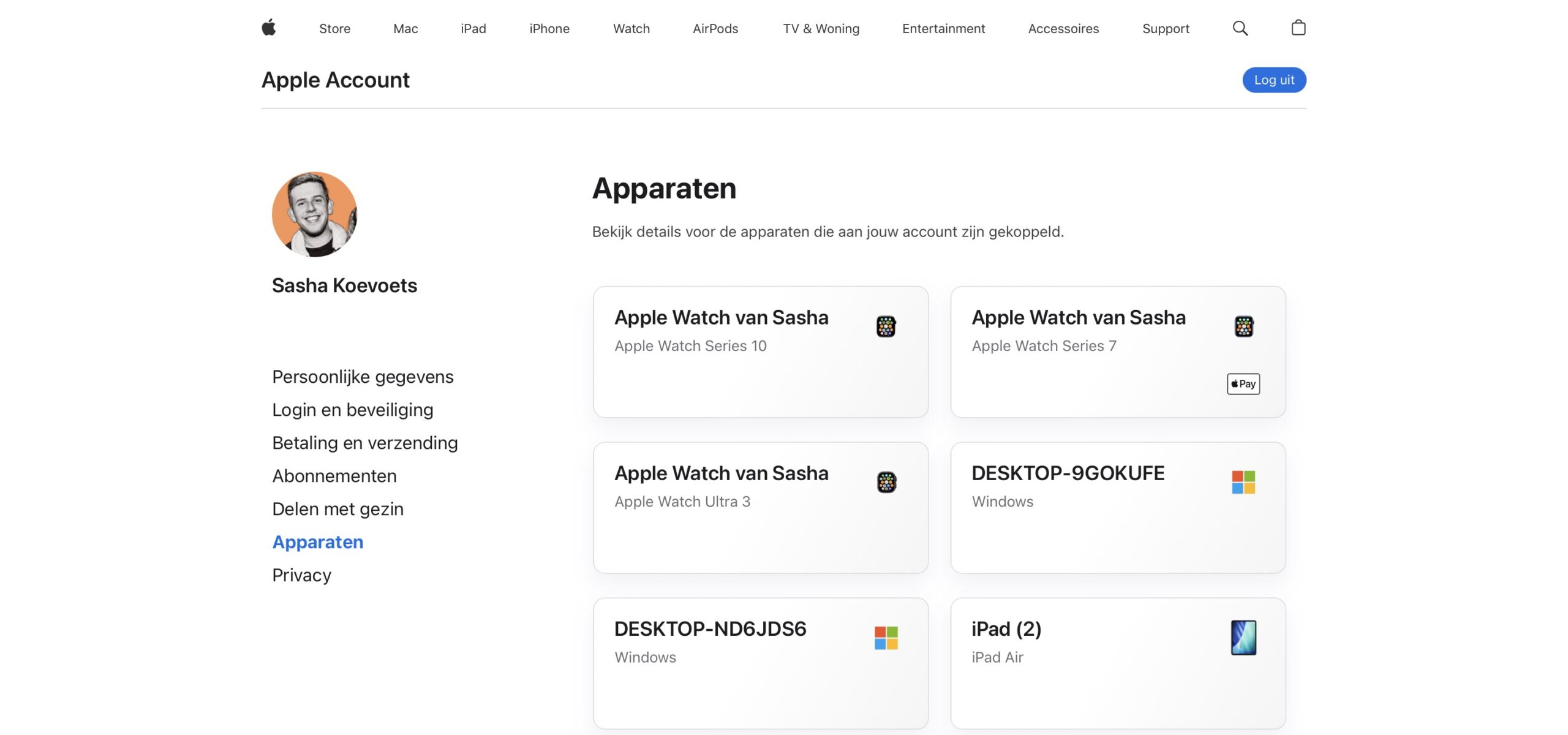 Gekoppelde Apple Account-apparaten bekijken op Apple’s website