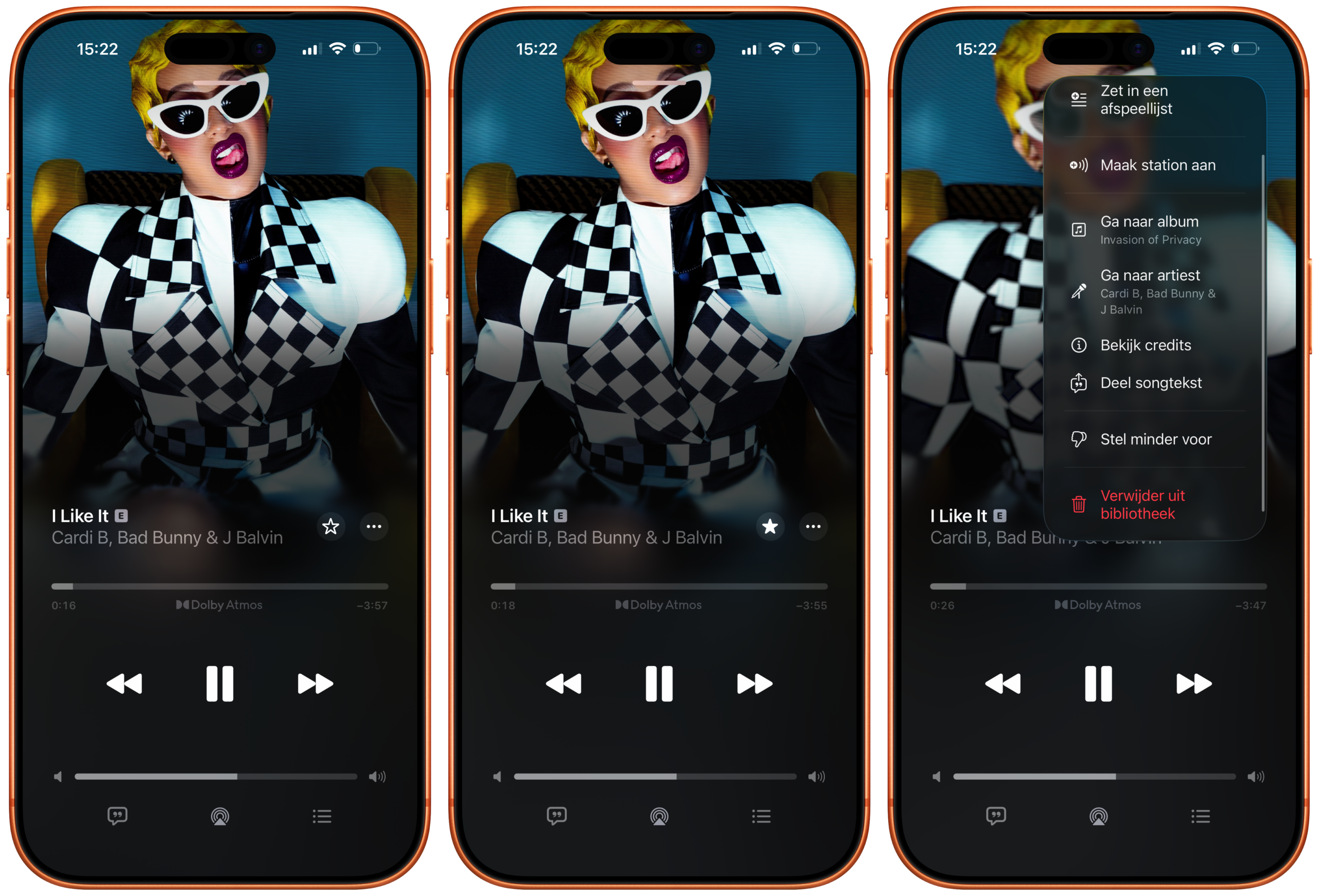 Ook bij radiostations kun je een hartje geven. Je krijgt dan meer of minder soortgelijke radiostations te zien in je aanbevelingen. Zodra je een radiostation start, kun je op de drie puntjes tikken om op de ster te drukken. Vind je iets niet leuk, dan tik je op het duimpje omlaag met de tekst Stel minder voor.