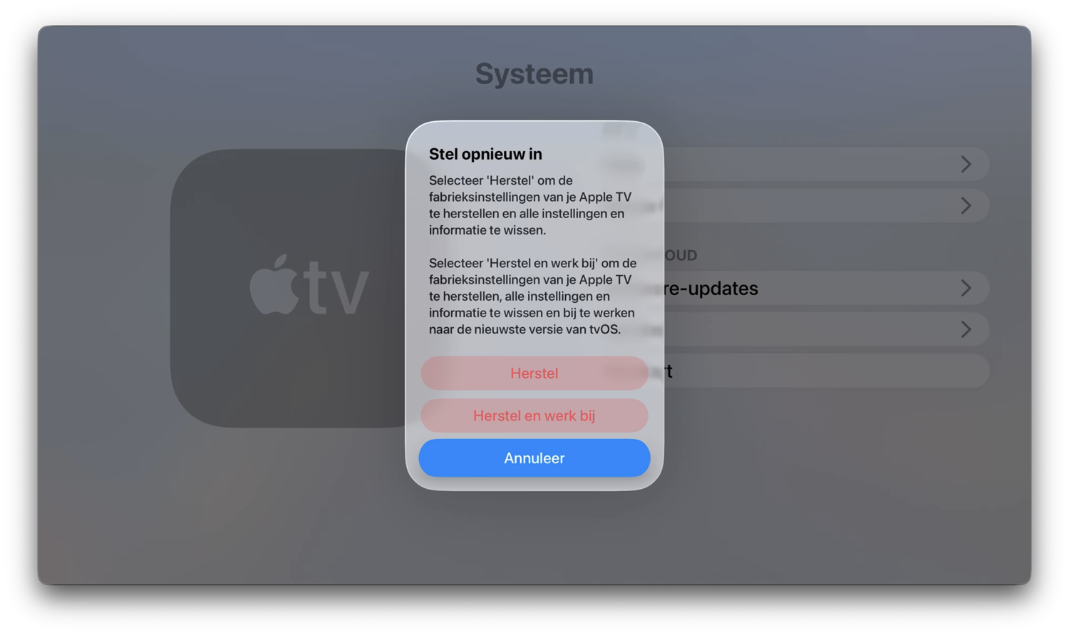 Apple TV naar fabrieksinstellingen terugzetten (HD en 4K)