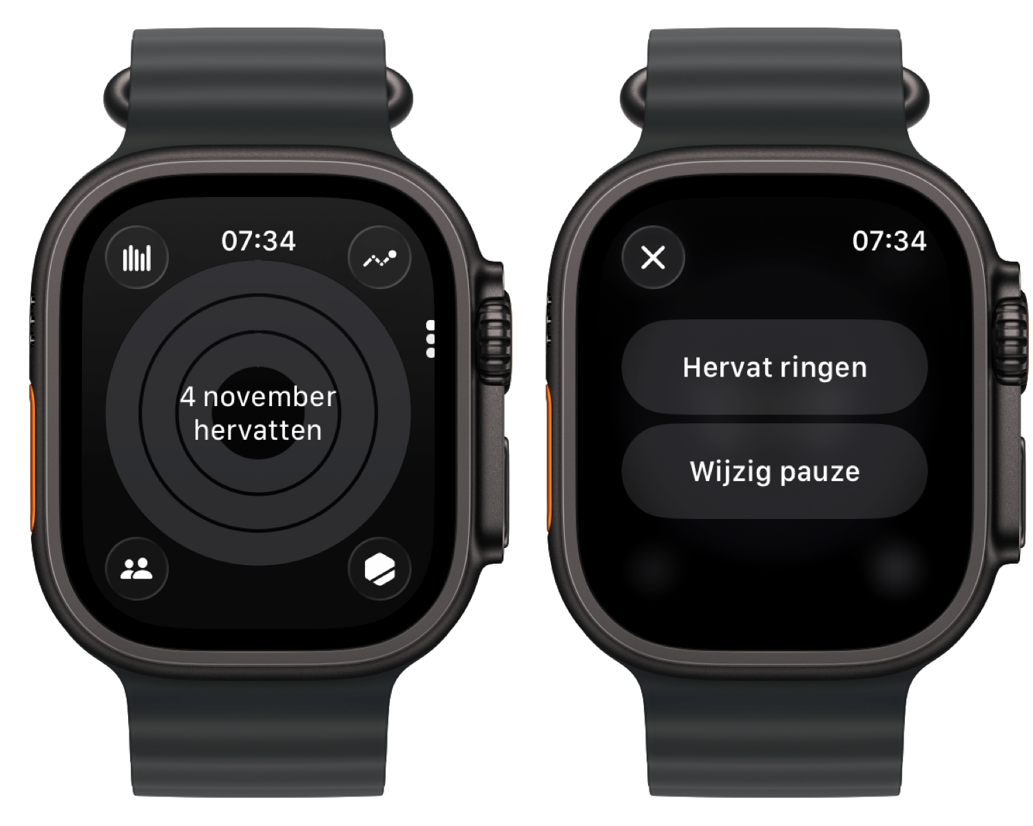 - Tik op de gekleurde ringen die in beeld verschijnen en kies voor Hervat ringen of Wijzig pauze.