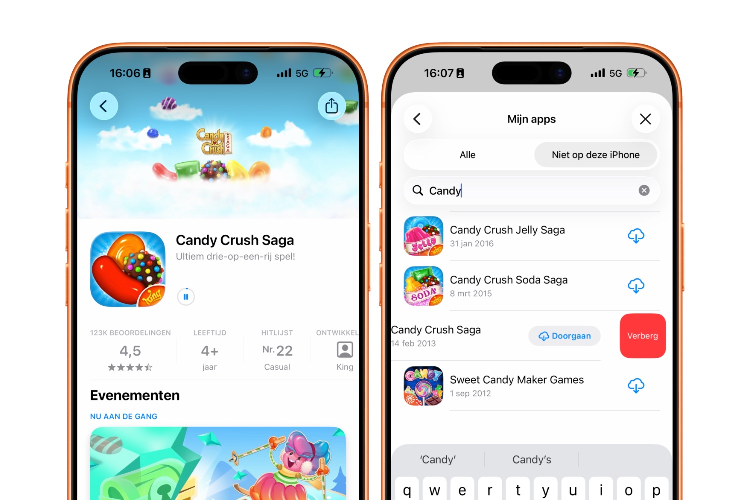 Je kunt aankopen die je met je Apple Account in het verleden hebt gedaan gemakkelijk opnieuw installeren. Je herkent deze eerdergeïnstalleerde apps aan het blauwe wolkje met daaronder een pijltje. Dit betekent dat je de app kosteloos weer kunt downloaden. Druk op het symbooltje en het icoontje verandert naar een blauw rondje. Als de download voltooid is, verandert dit rondje naar de knop Open. Wil je meer tips over het opnieuw downloaden van apps, check dan onderstaand artikel.
