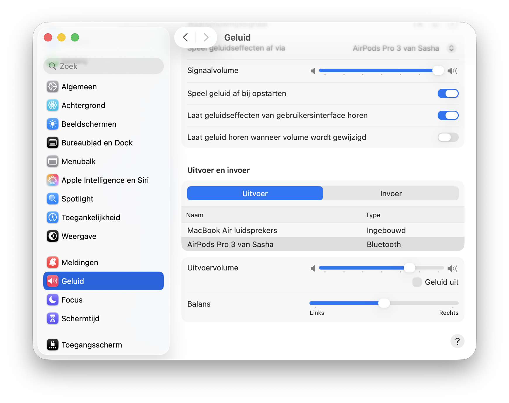 Ook op de Mac is het mogelijk om de audiobalans aan te passen. Let wel op dat deze instelling niet alleen zal gelden voor oortjes en koptelefoons, maar ook voor de interne speakers.