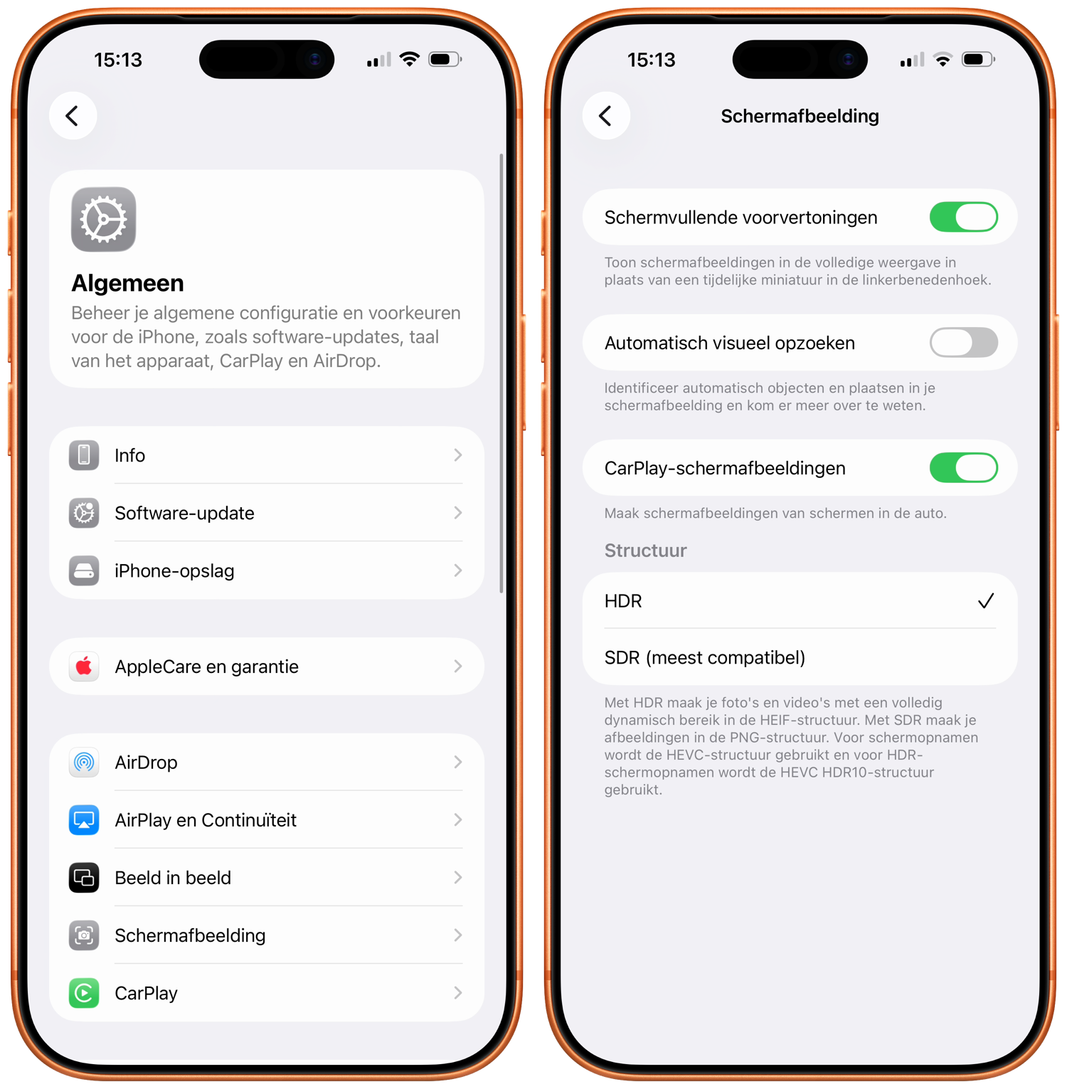 In iOS 26 is het maken van een CarPlay-screenshot standaard uitgeschakeld. Daarom wordt er geen schermafbeelding gemaakt als je iPhone verbonden is met het CarPlay-scherm en je de stappen voor het maken van een screenshot volgt. Wil je toch nog wel een screenshot maken van je CarPlay-scherm, dan doe je dat als volgt: