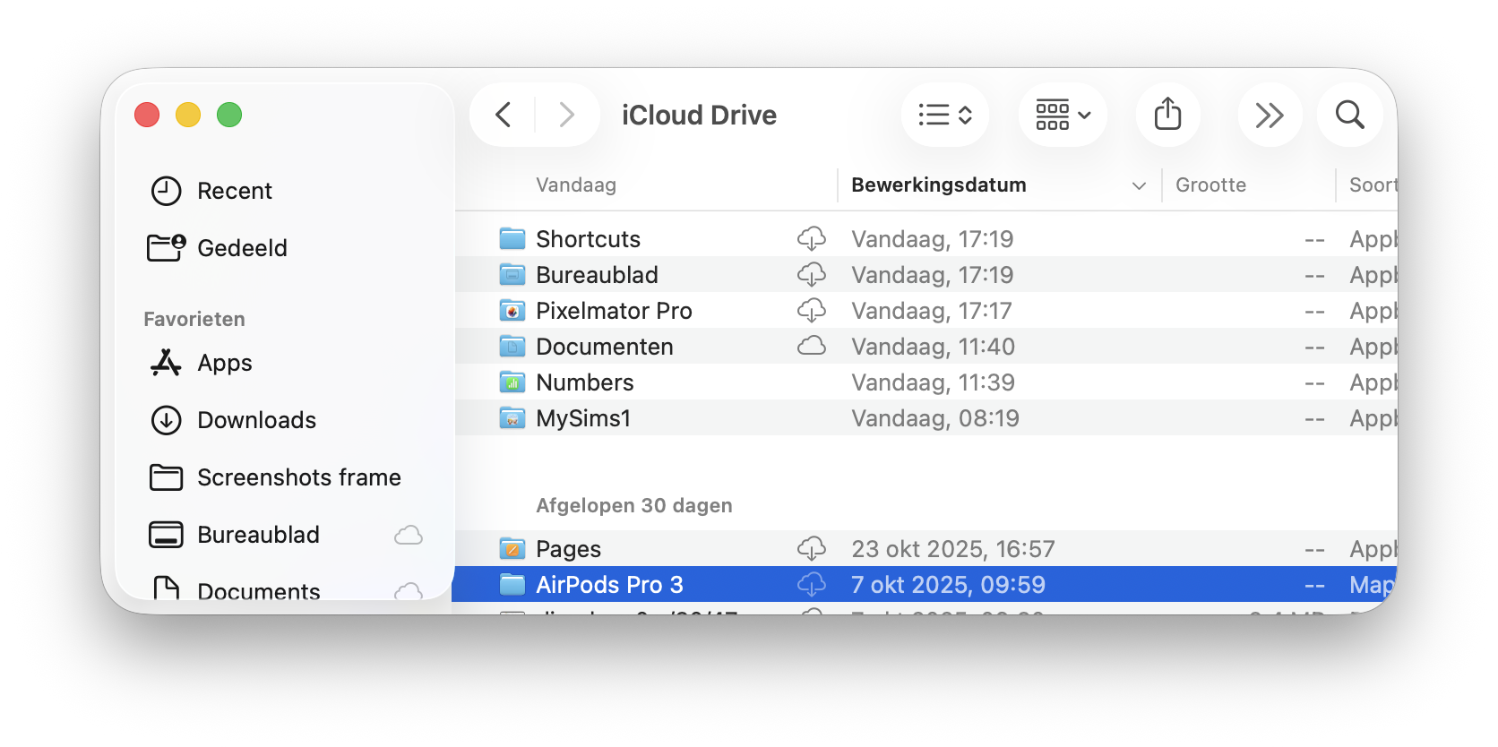 - Apps zoals Pages hebben een eigen map op iCloud.