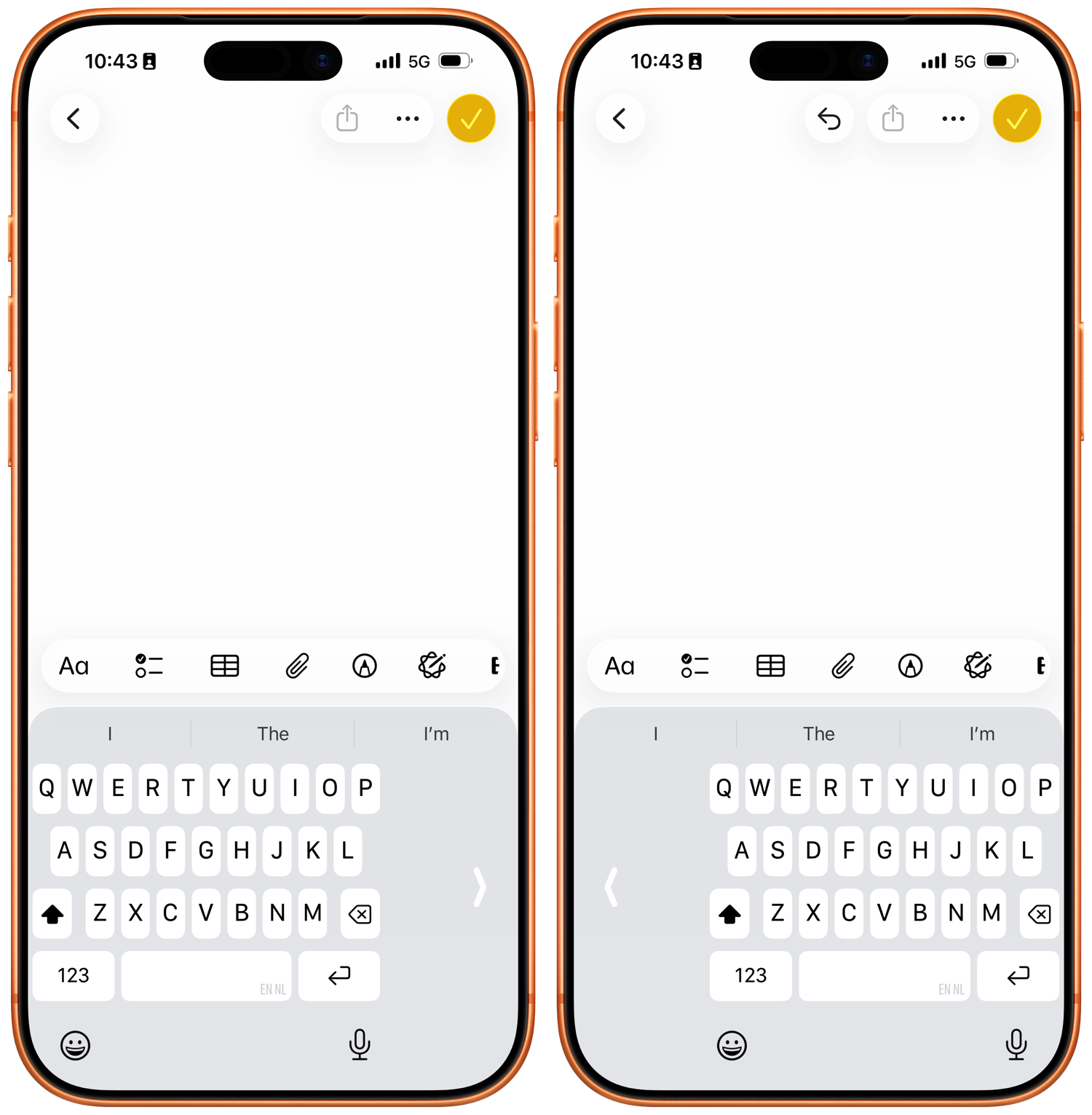 Apple houdt ook rekening met mensen die hun iPhone linkshandig gebruiken. Handig is dat dit op systeemniveau werkt, dus als je het eenmaal hebt ingesteld werkt het in alle apps met tekstinvoer. Het toetsenbordje dat je te zien krijgt, is ongeveer hetzelfde formaat als op de iPhone SE en is dus nog goed te gebruiken. Wil je teruggaan naar de normale weergave, dan druk je op het pijltje om de normale weergave te krijgen.