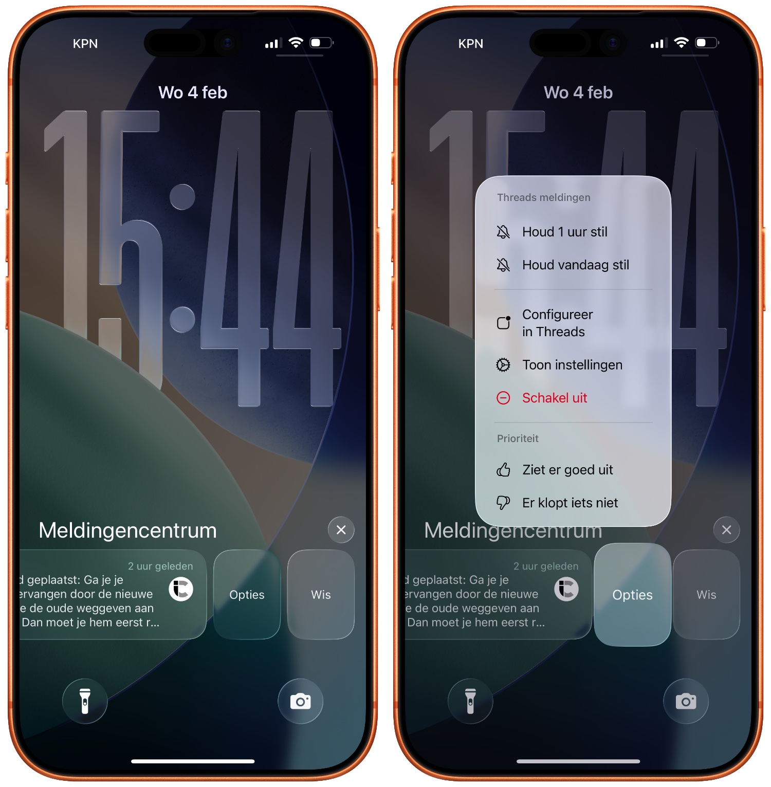 Je kan ook via het toegangsscherm snel de geluiden van de meldingen van een app uitschakelen voor 1 uur of voor de rest van de dag. Dit werkt als volgt: