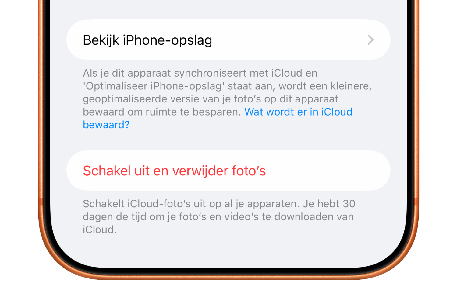 - Ga naar Instellingen > je naam > iCloud > Opslag > iCloud-foto’s.