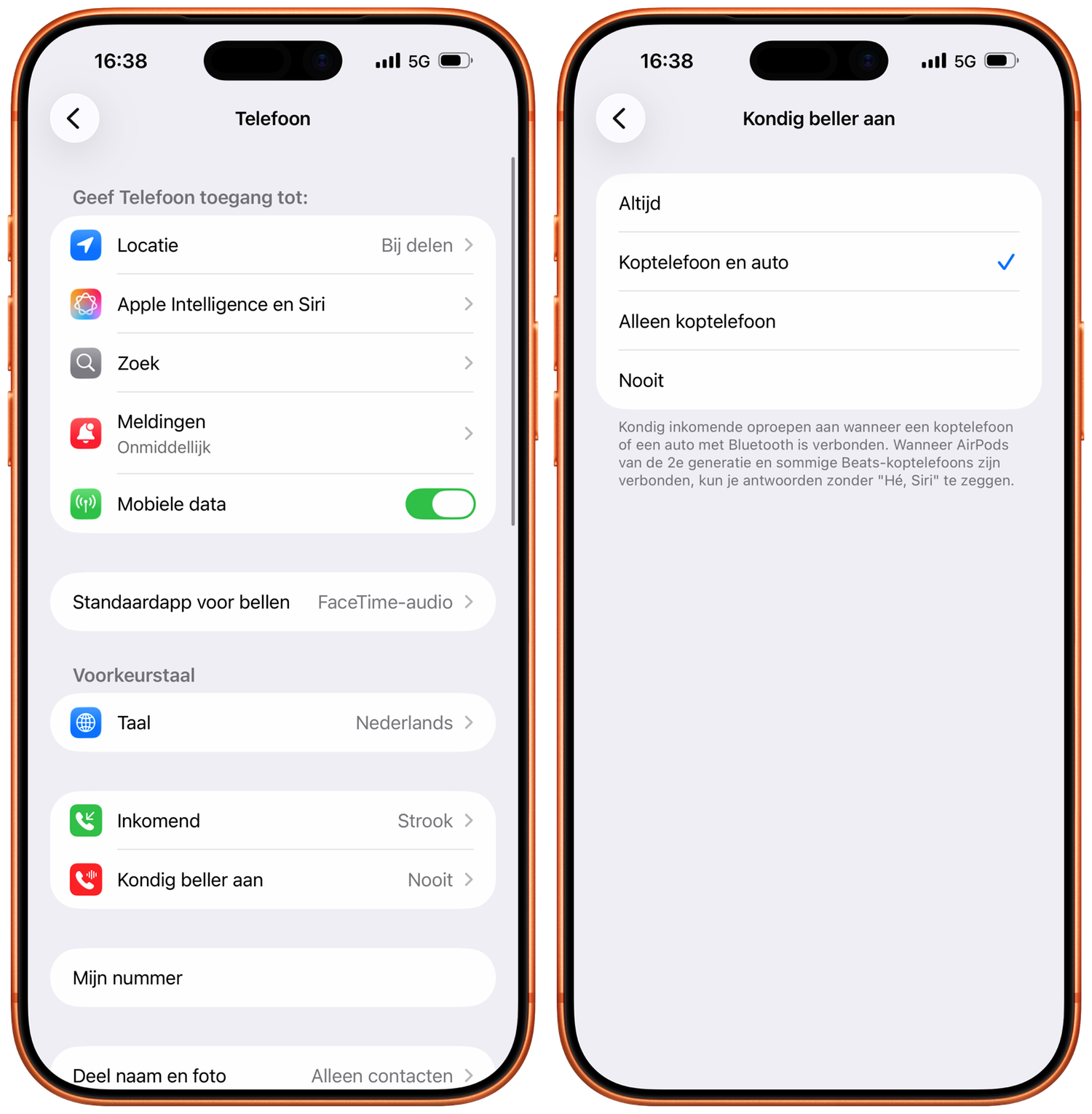 Je wil natuurlijk ook weten wie er belt. Daarom raden we aan om die aankondiging in te stellen. Zo doe je dat: