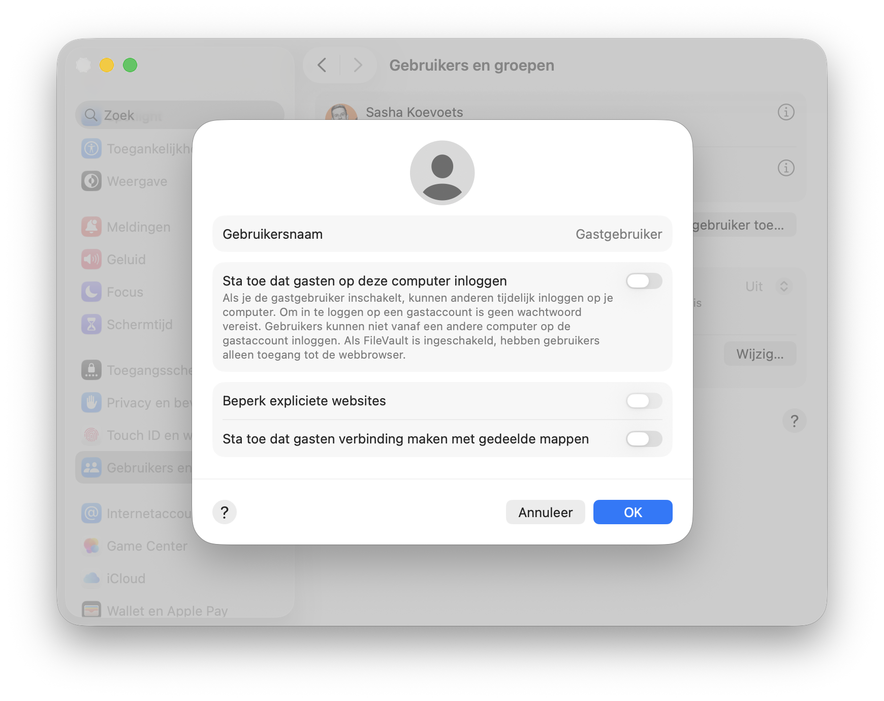 Het gastgebruiker-account staat in macOS niet standaard ingeschakeld. Zo kun je het gastgebruiker-account activeren: