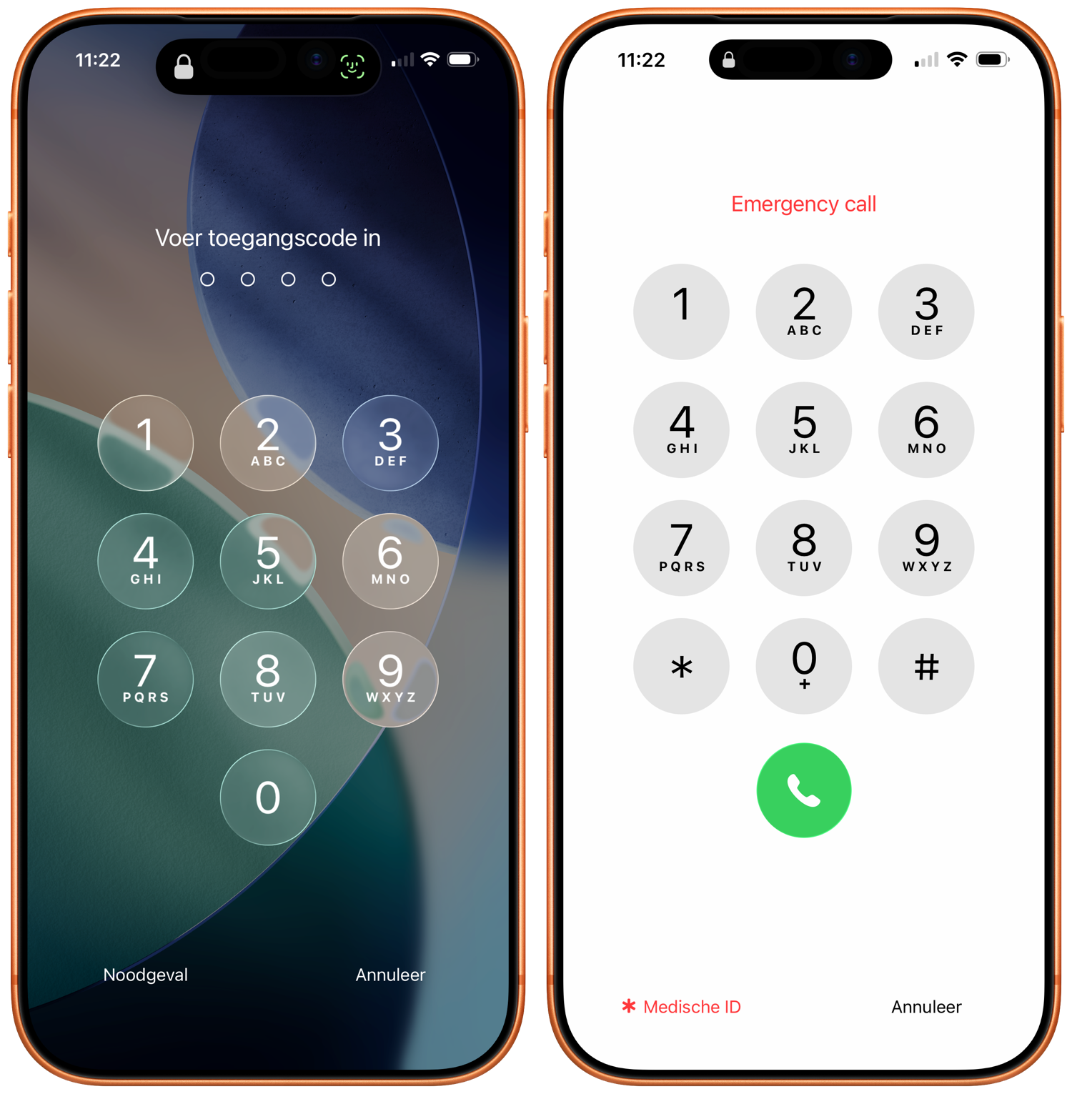 Wil je dit zelf testen op je eigen toestel? Zorg er dan voor dat je een vinger gebruikt die niet voor Touch ID geregistreerd is. Op een iPhone met Face ID blokkeer je de camera om te voorkomen dat je gezicht gescand wordt. Vanuit dit scherm zijn alle aanwezige contactpersonen te bellen, ook als de iPhone vergrendeld is.
