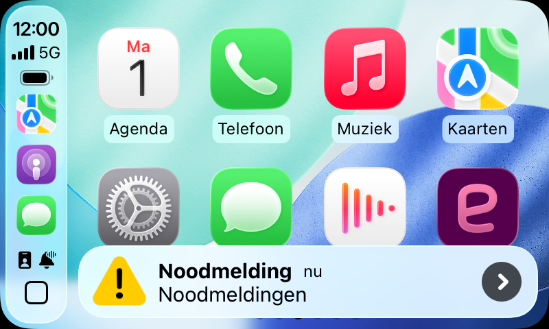 Wil je een NL-Alert ontvangen terwijl je CarPlay gebruikt? Dat kan gewoon via je iPhone. Je hoeft niets speciaals in te stellen: zodra er een noodmelding wordt verstuurd, verschijnt deze automatisch in beeld op het autoscherm als je gebruikmaakt van CarPlay, met een doordringend alarmgeluid. Zodra je op de melding tikt, leest Siri de inhoud van het bericht voor.