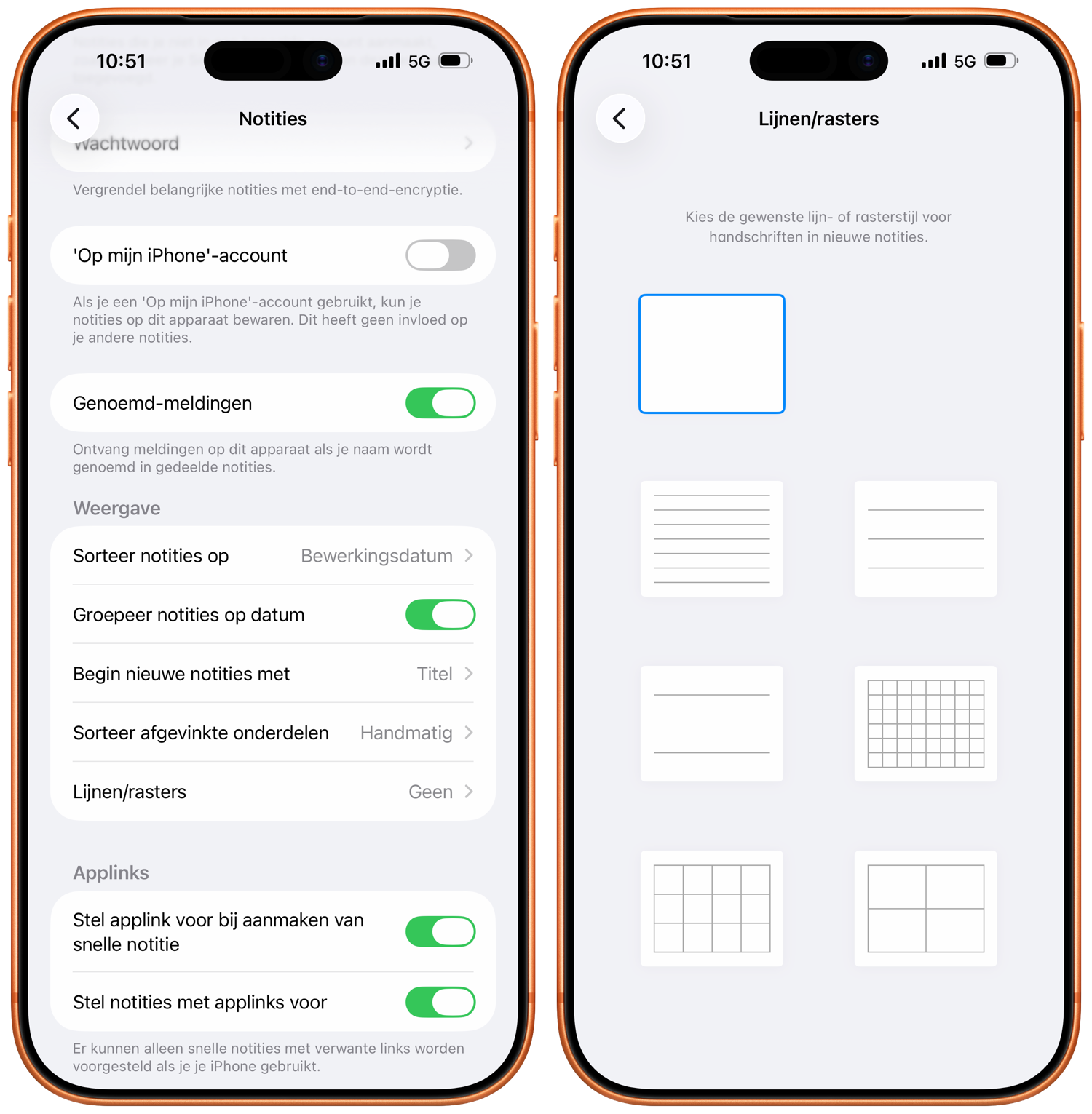 - Ga naar Apps > Notities > Lijnen/rasters.