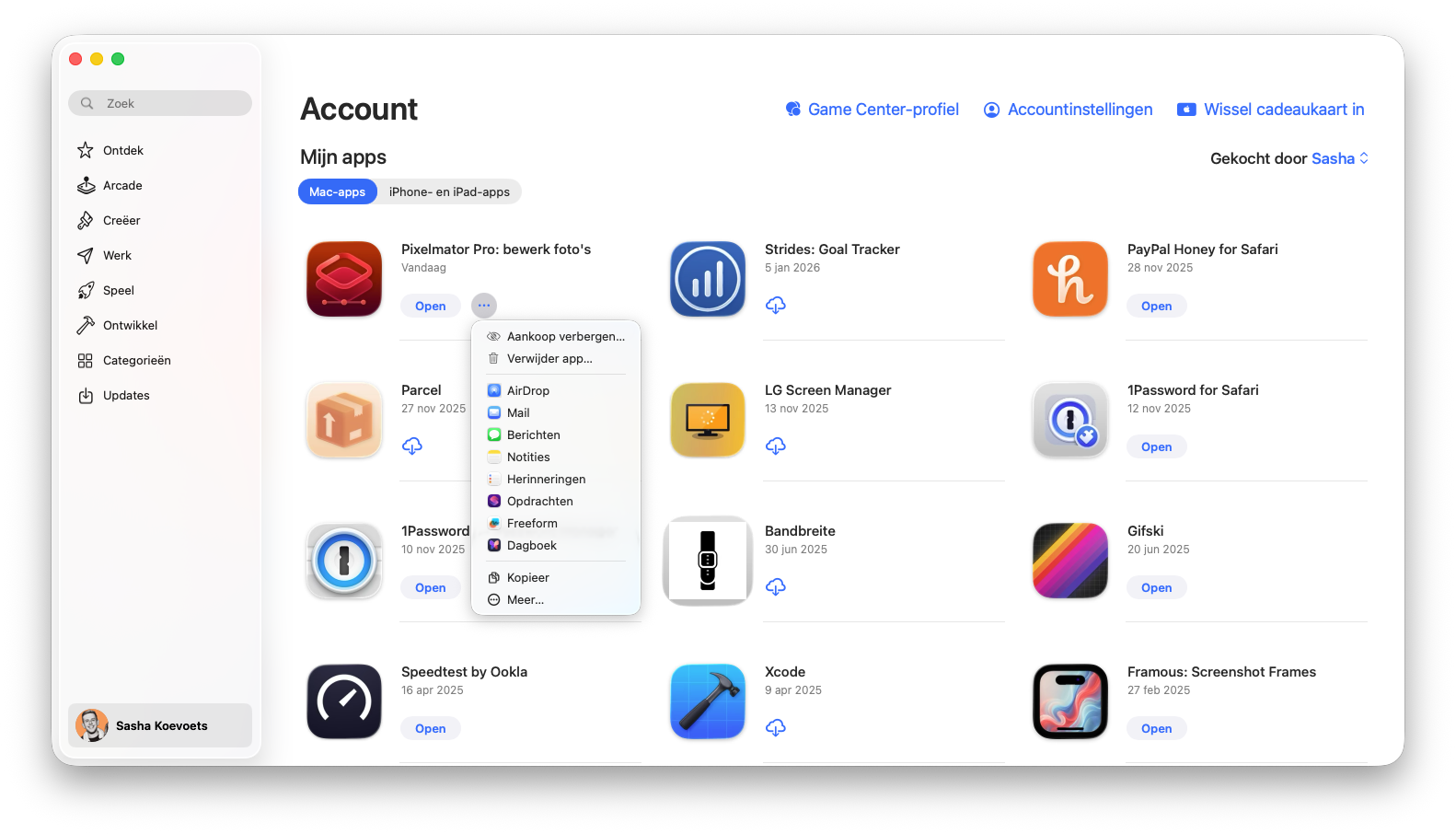 - Je ziet nu de apps die je hebt aangeschaft. Bij de app die je wilt verwijderen moet een knop Open staan. Dit geeft aan dat het programma is geïnstalleerd.