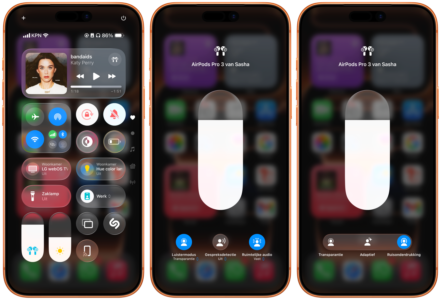 Op je iPhone en iPad kun je ook wisselen tussen ruisonderdrukking en transparantiemodus. Je kunt het eventueel helemaal uitschakelen, zodat de microfoons niet meer actief zijn (maar waarom zou je dit willen?). Je regelt dit allemaal vanuit het Bedieningspaneel.