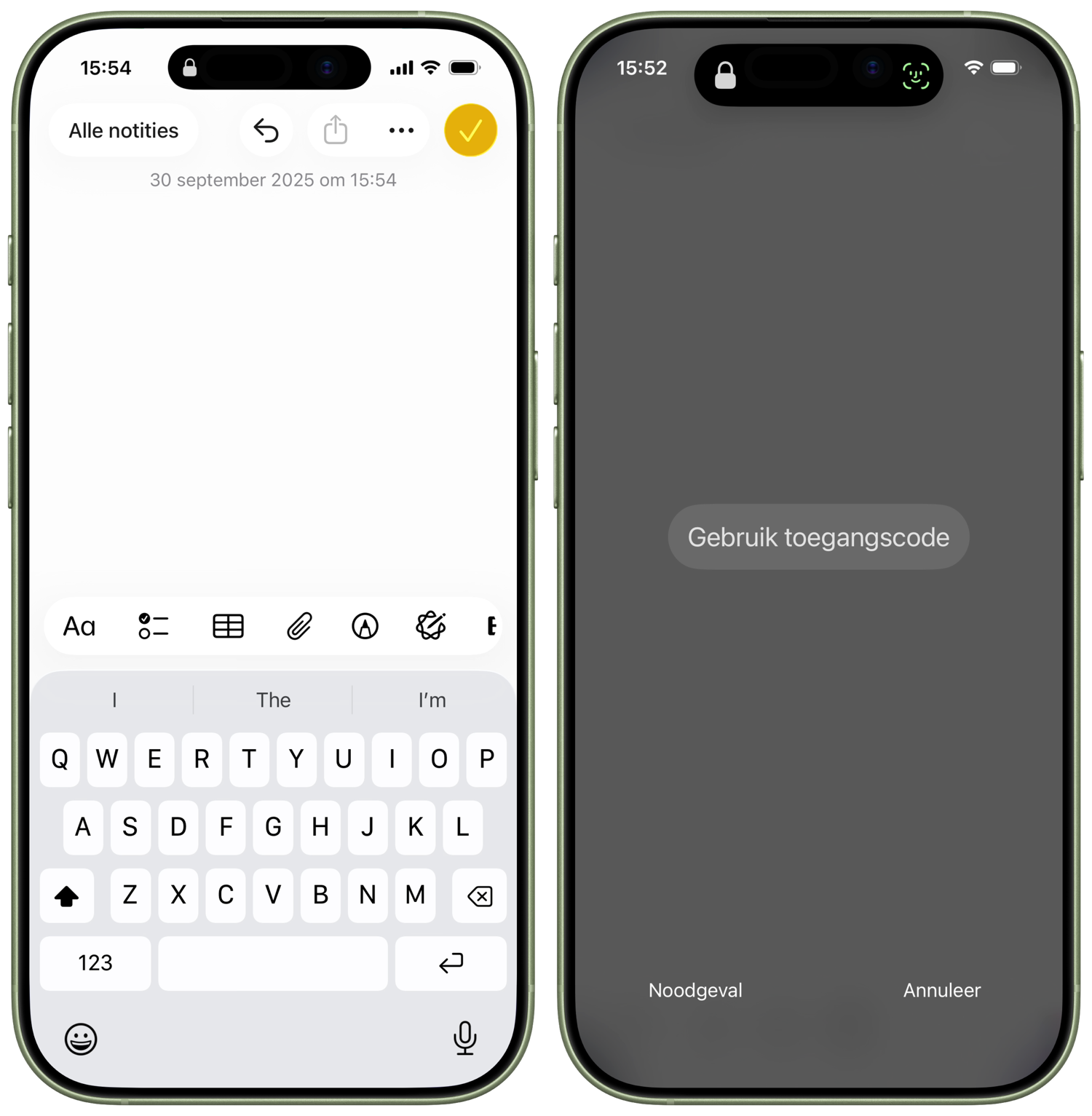 Wanneer je nu vanuit je Bedieningspaneel op een vergrendelde iPhone de Notities-app wil openen, hoef je je iPhone niet eerst te ontgrendelen. Je kunt nu direct beginnen met typen. Bij een Face ID-toestel is de kans groot dat je iPhone automatisch ontgrendeld wordt, maar bij een Touch ID-toestel is dat minder vaak het geval.