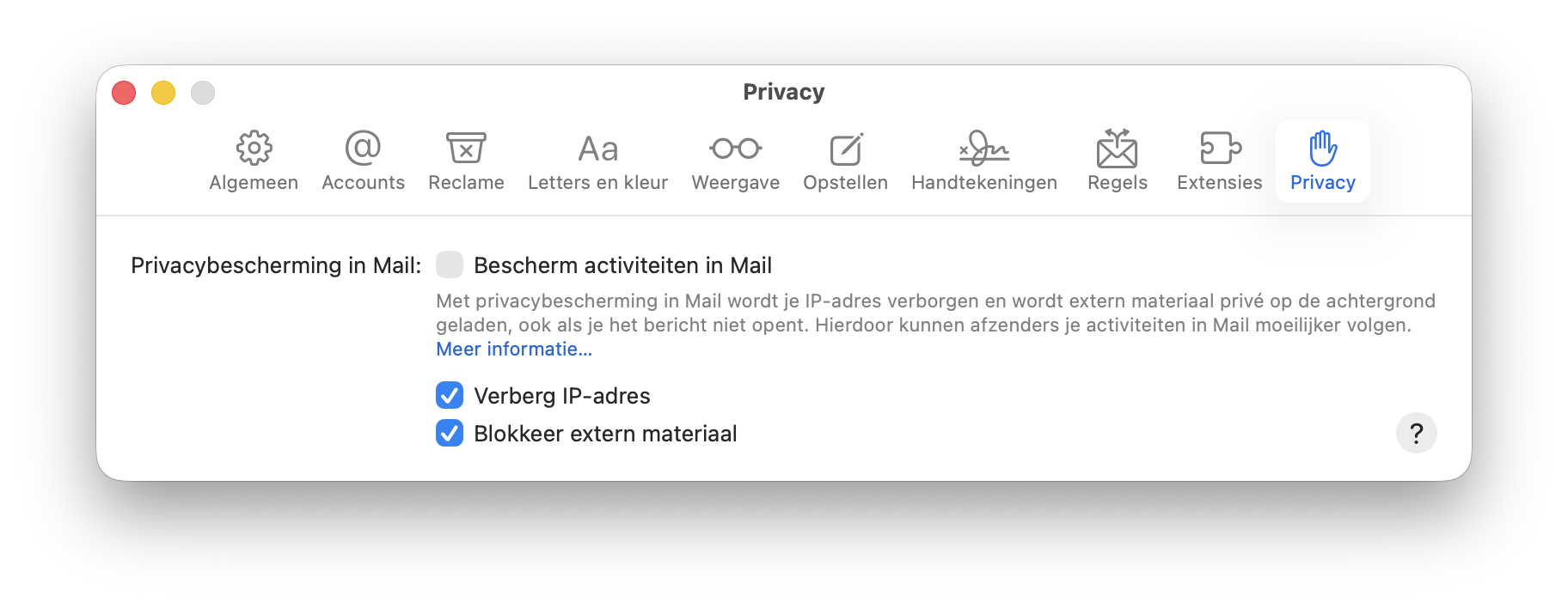 Los van deze functie, zijn er nog meer manieren om trackingpixels tegen te gaan. Je kunt ook bepaalde instellingen individueel voor de Mail app op je Mac én iPhone of iPad instellen om trackingpixels te voorkomen. Lees per apparaat hoe het werkt: