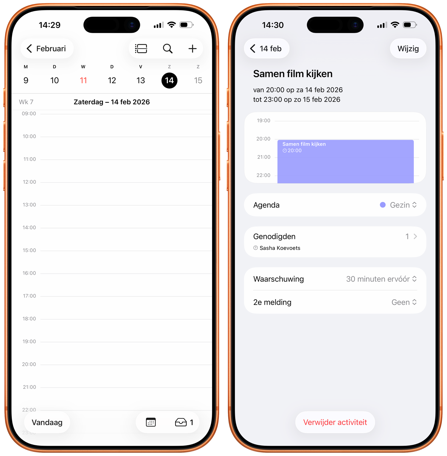 - Druk op de afspraak en tik op Stel nieuwe tijd voor.