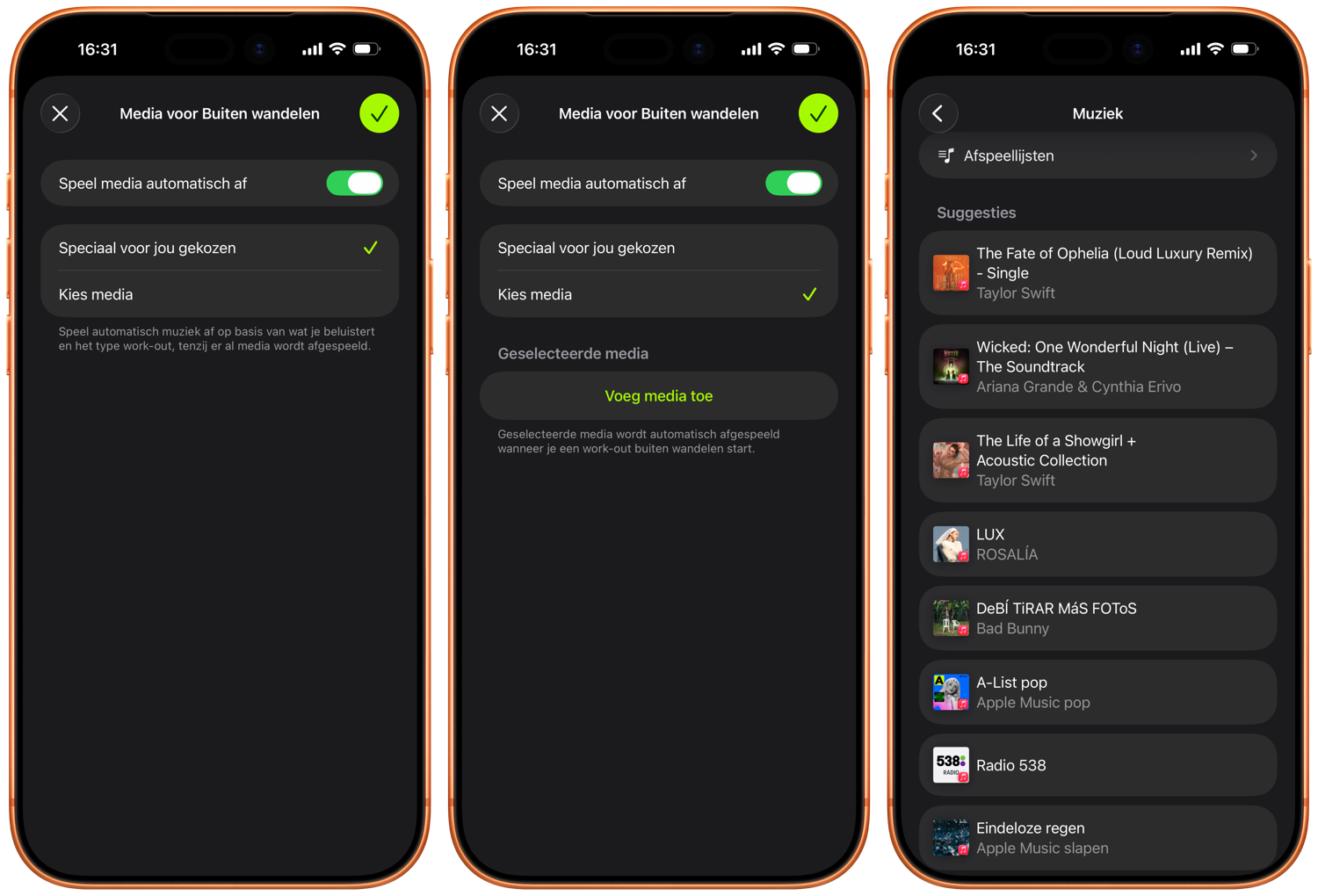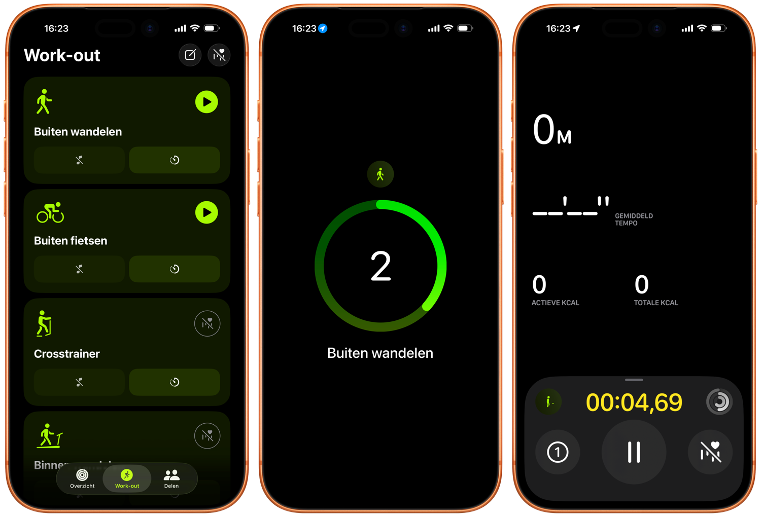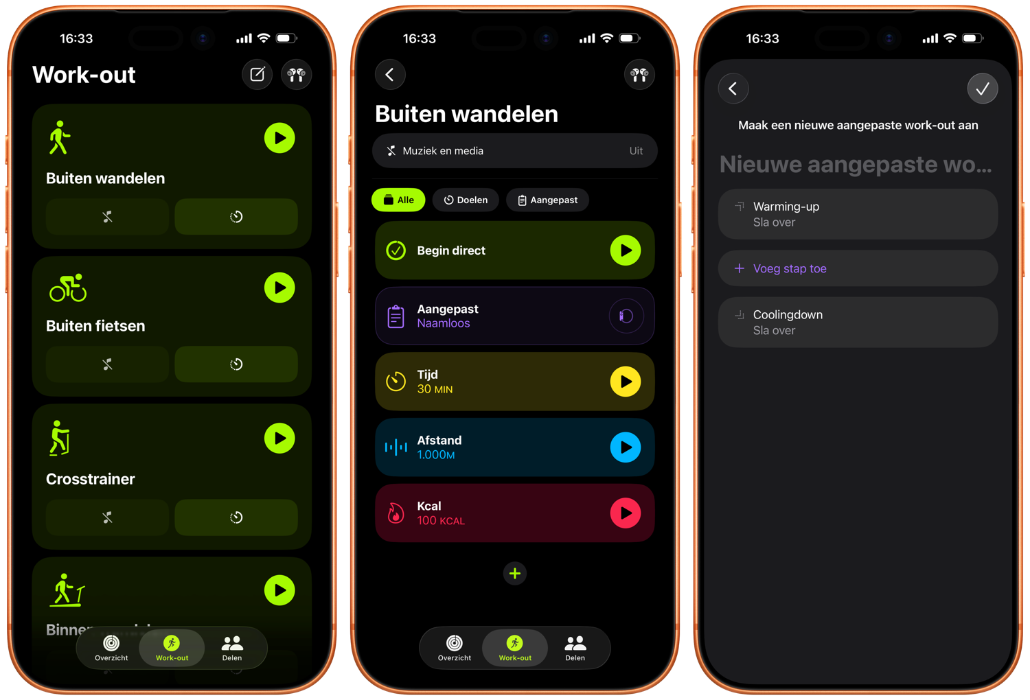 Wanneer je verbonden met AirPods Pro 3 of een geschikte Bluetooth-hartslagmonitor, komt er een groter aantal work-outs beschikbaar. Gebruik je een Apple Watch in combinatie met je iPhone? Dan registreer je zelfs álle beschikbare sporten direct vanaf je iPhone.