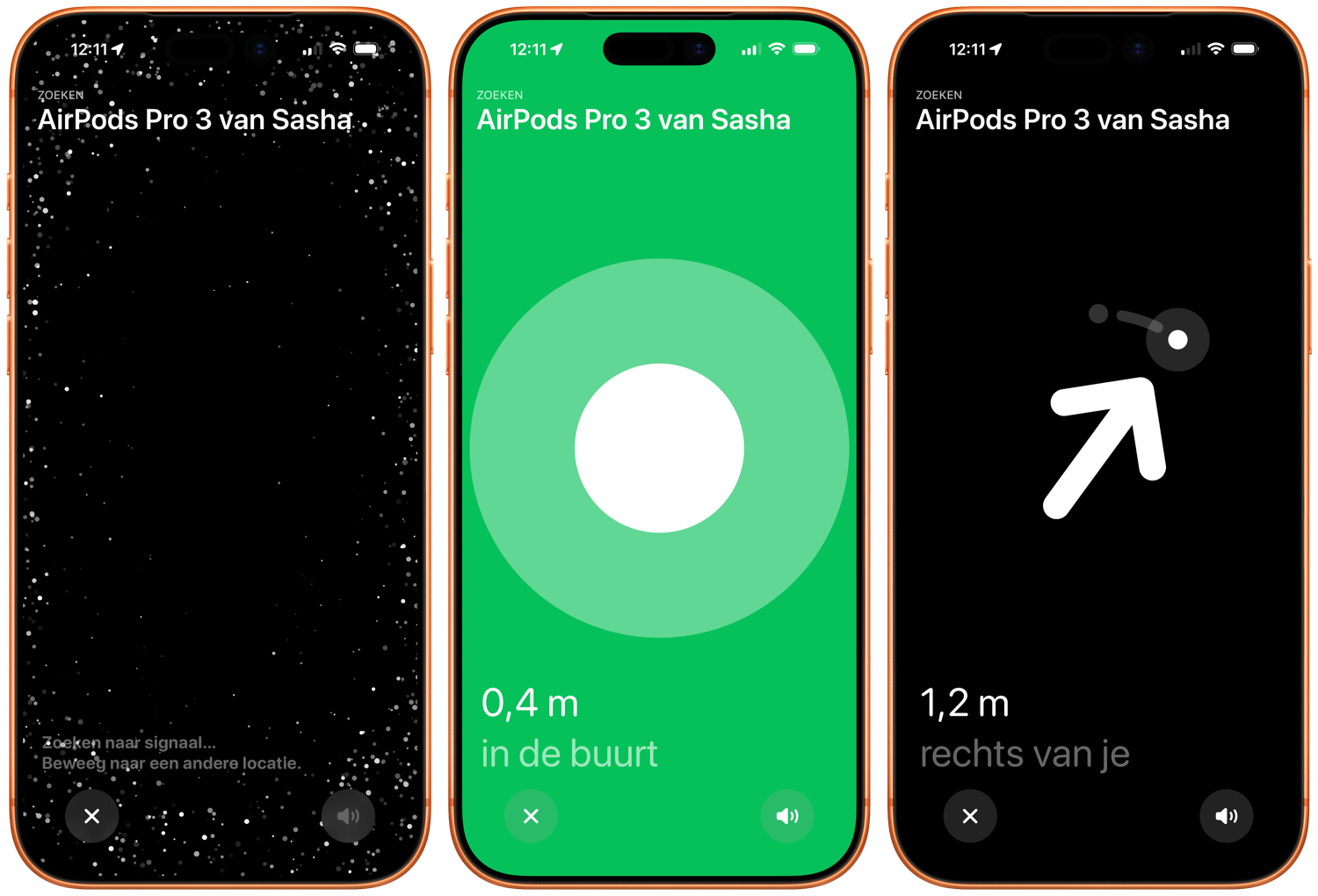 Kun je de AirPods niet vinden, of weet je nog steeds niet waar je moet beginnen met zoeken? Dan kun je ook een geluidje laten afspelen: